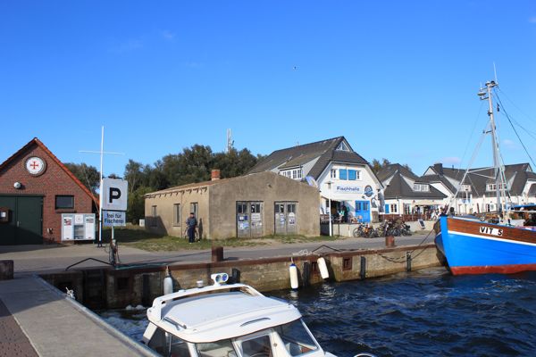 Diese Woche fand die Bauanlaufberatung zum Sanitär- und Sozialgebäude am Hafen in Vitte statt. Nun geht es auch langsam los mit dem Neubau. Diese Woche haben Angestellte der Hiddenseer Logistik GmbH die Dachasbestplatten am bestehenden Altbau zurückgebaut. Nächste Woche soll der Abbruch des Gebäudes beginnen. Danach wird dann eine Rügener Baufirma den Neubau errichten. Es tut sich also was am Vitter Hafen.