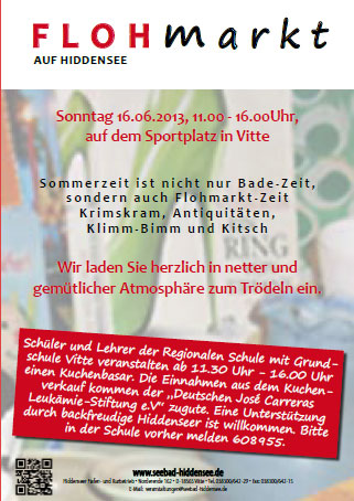 Am Sonntag, den 16. Juni 2013, veranstaltet der Hiddenseer Hafen- und Kurbetrieb auf dem Sportplatz in Vitte, einen Flohmarkt. In der Zeit von 11.00 – 16.00 Uhr kann man in netter und gemütlicher Atmosphäre trödeln.
