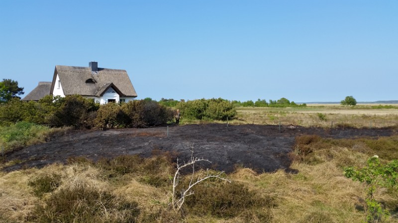 Gegen 10:30 Uhr erhielt die Einsatzleitstelle der Polizei in Neubrandenburg die Mitteilung über den Brand einer Heidefläche auf Hiddensee.