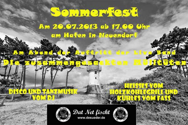 Am kommenden Samstag, den 20. Juli 2013, findet in Neuendorf wieder das alljährliche Sommerfest des Vereins “De Süder” am Hafen in Neuendorf statt.